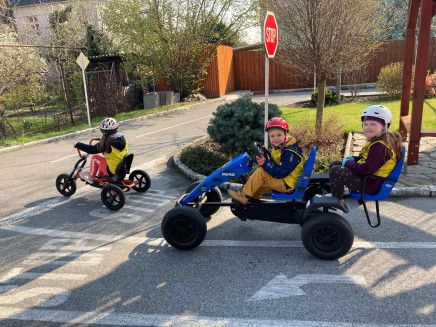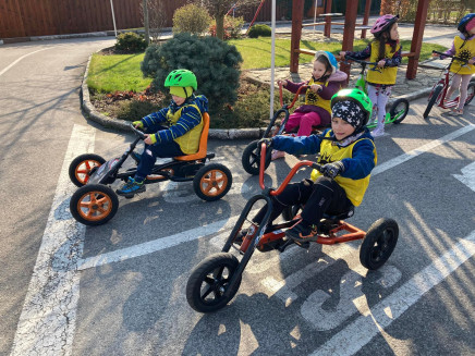 Předškoláci navštívili Dětské dopravní centrum v Prostějově, kde absolvovali jarní část výuky dopravní výchovy.