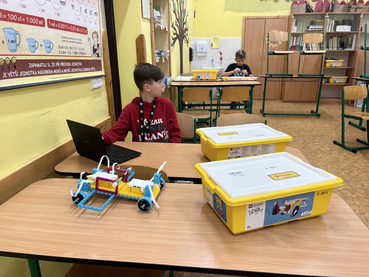V letošním roce jsme žákům 5. a 6. třídy nově nabídli kroužek robotiky. Zatím se žáci naučili pracovat se stavebnicí LEGO® Education SPIKE™ Prime. Jde v podstatě o vzdělávací nástroj, který kombinuje technické LEGO® stavební dílky s intuitivním hardwarem a kódovacím jazykem založeným na jazyce Scratch nebo Python. Práce se stavebnicí a programování postavených robotů podporuje kritické myšlení a řešení komplexních problémů. Umožňuje žákům naučit se základům programování a dalším dovednostem 21. století. Kluci jsou velmi kreativní, vymýšlí si hlavně vlastní projekty a některé z jejich funkčních robotů (nejčastěji různá vozítka, formule, ale také funkční robotická ruka) můžete shlédnout v naší FOTOGALERII.
